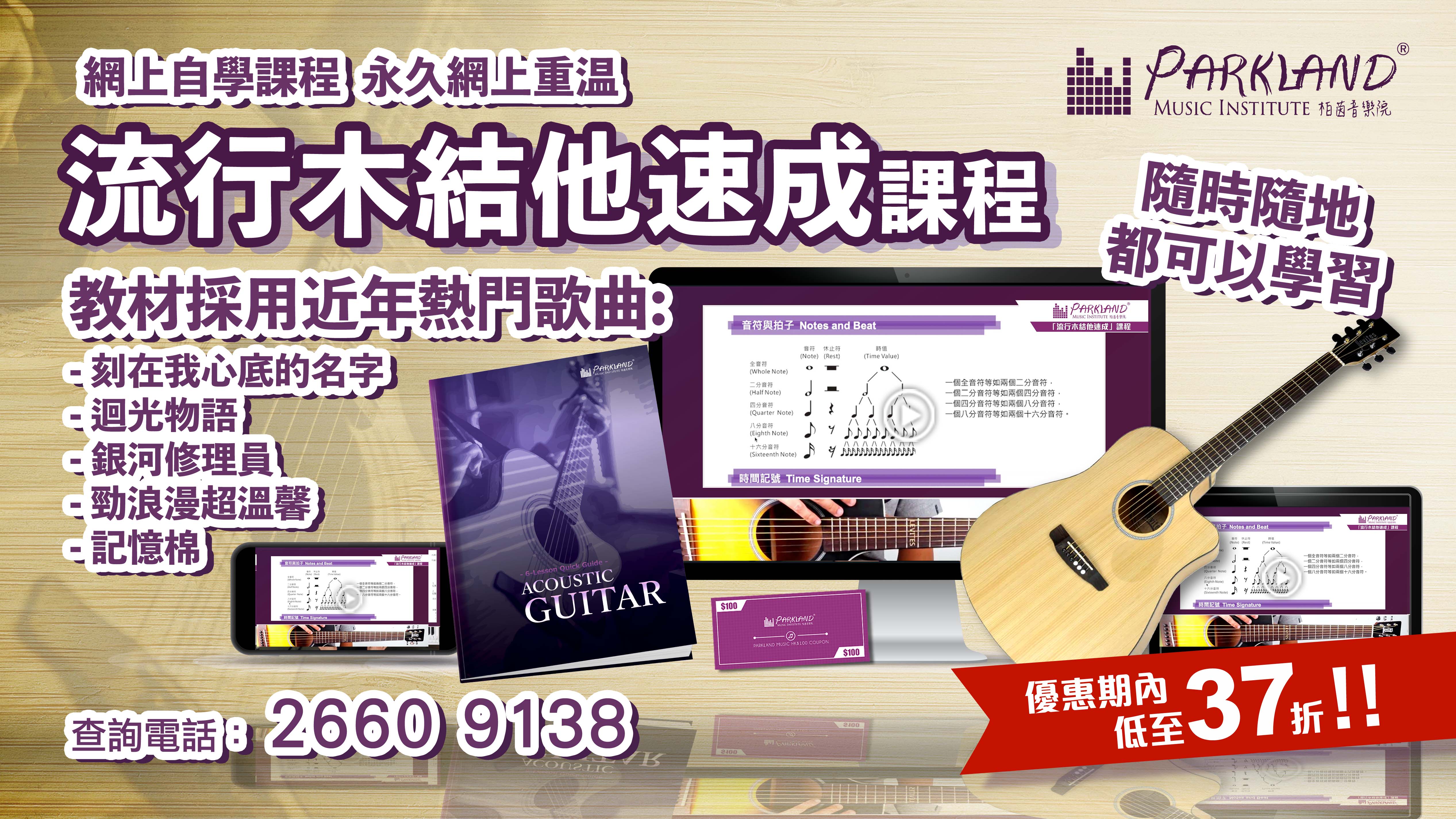 1. 課程附送一張Parkland $100的課程禮券,你可以報讀我們的網上或實體一對一木結他課程,對時再問導師;或