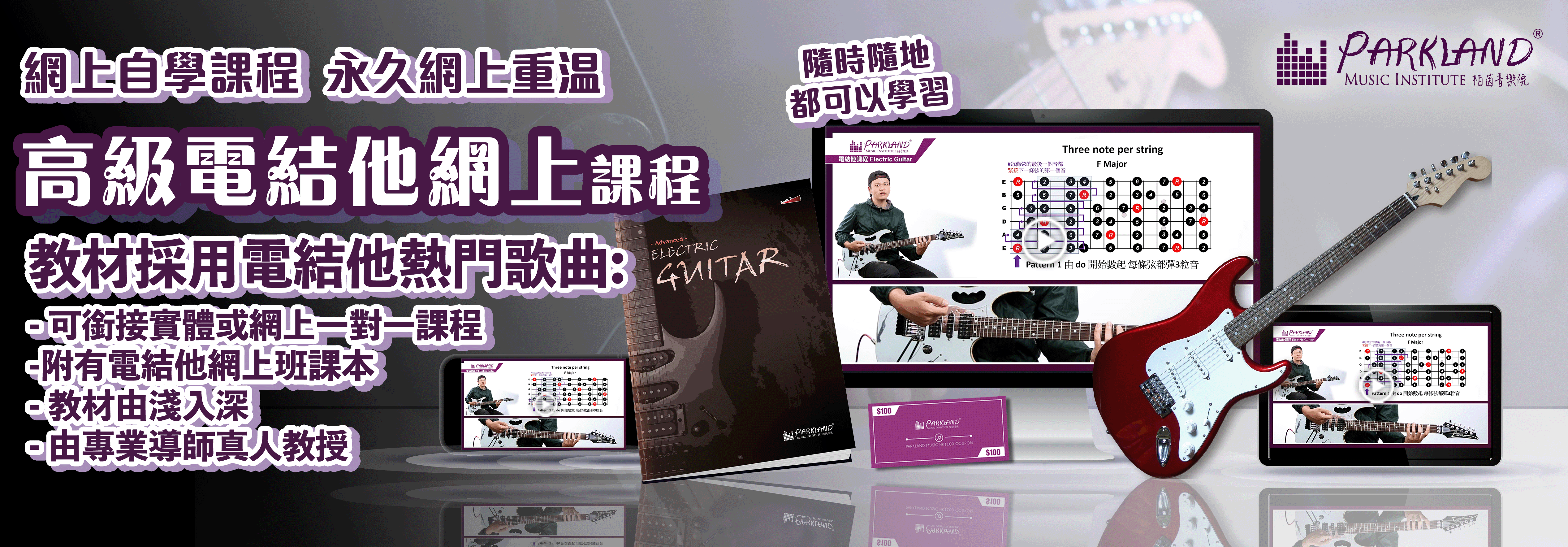 Parkland 課程$100禮券, 讓同學可以在學完這個網上速成班課程後,如有不明白的地方可到分校上實體堂或一對一網上LIVE課程再問導師。香港以外的同學可以報讀一對一網上LIVE課程。