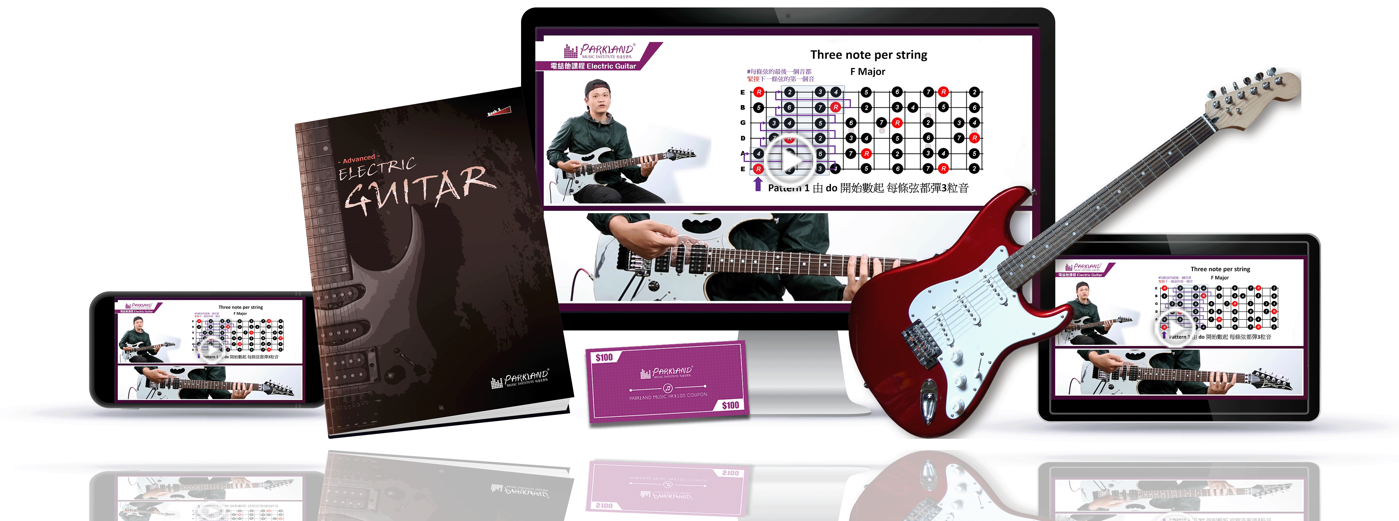 一本電結他網上班課本,涵蓋高級的電結他技巧及知識,更包括一些流行曲的和弦知識,務求令同學學習到全方位、實用的音樂知識,彩色印刷,不計成本。